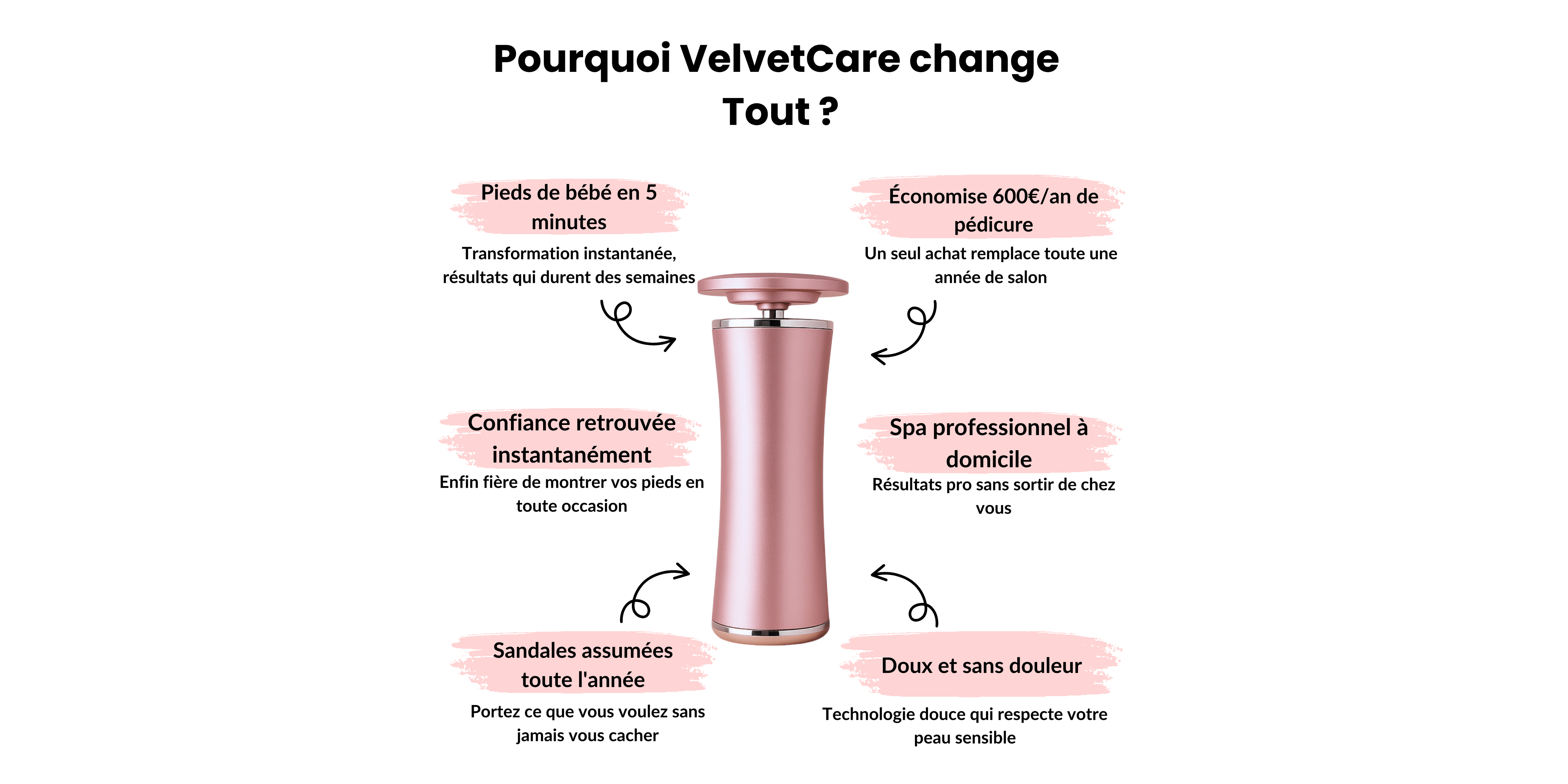Une pédicure coûte 60€. VelvetCare se rembourse dès la première utilisation et vous économise 600€/an minimum.